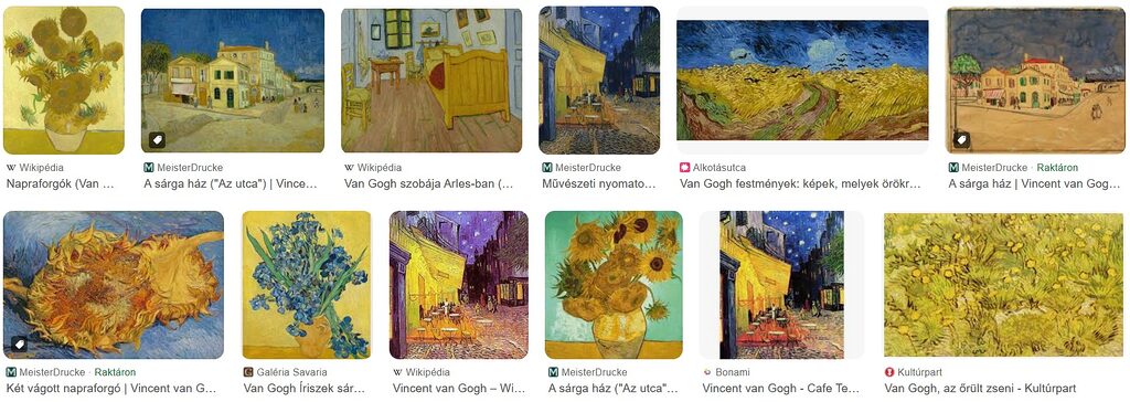 - Van Gogh (pszichés krízis → élénk sárgák, örvénylő ecsetvonások)